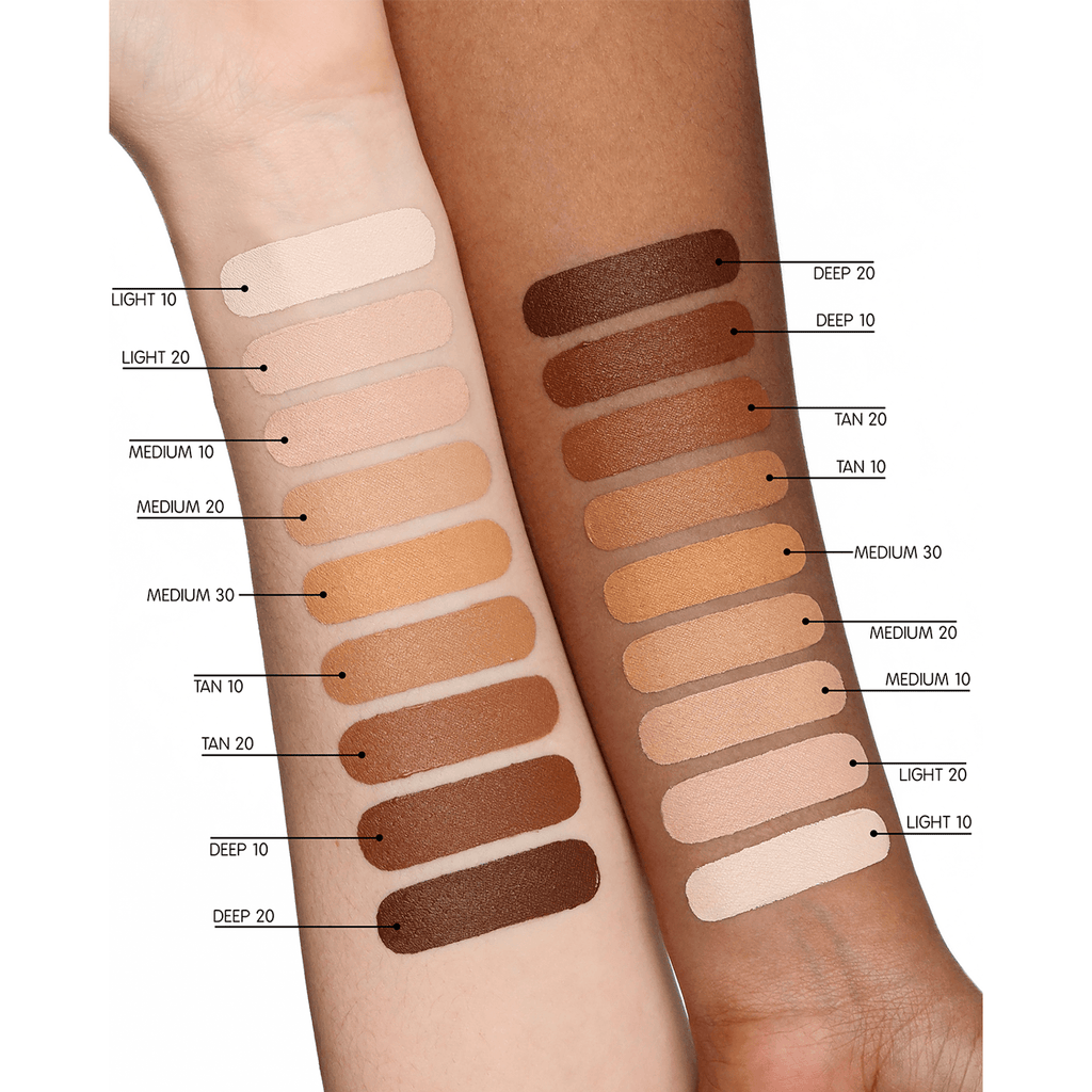 Corretivo cremoso, flexível e acabamento matte confortável. Sua fórmula é resistente à água, suor e oleosidade, com cobertura de média a alta e longa duração. Multifuncional, pode ser usado como corretivo, base e contorno, proporcionando um efeito natural sem pesar. Enriquecido com ativos que hidratam e mantêm a pele saudável ao longo do uso.