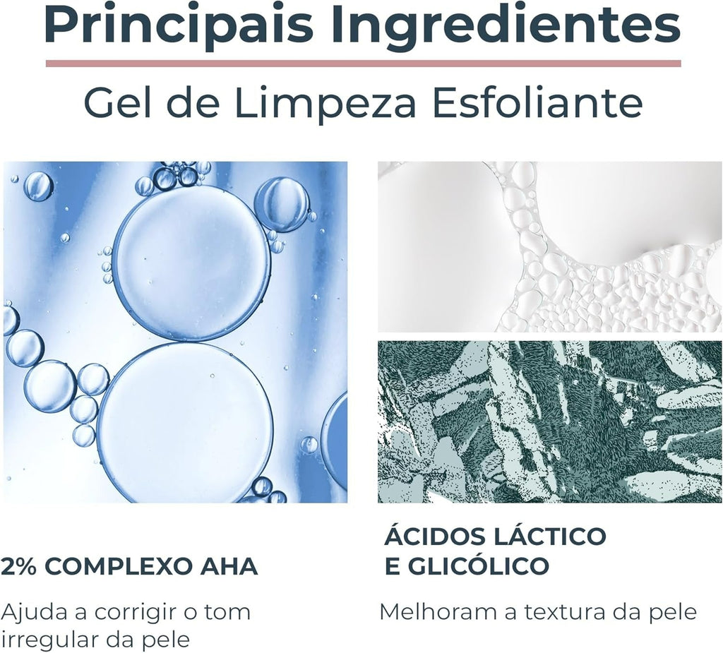 LIMPEZA PROFUNDA SEM AGREDIR: Remove impurezas e células mortas; ESFOLIAÇÃO SUAVE COM AHA: 2% de ácidos que esfoliam suavemente e uniformizam a pele; PELE HIDRATADA E RADIANTE: Deixa a pele com viço, maciez e iluminação saudável; USO DIÁRIO: Ideal para todos os tipos e tons de pele; REDUÇÃO DE MANCHAS: Clareia e melhora a textura desde a 1ª semana*.