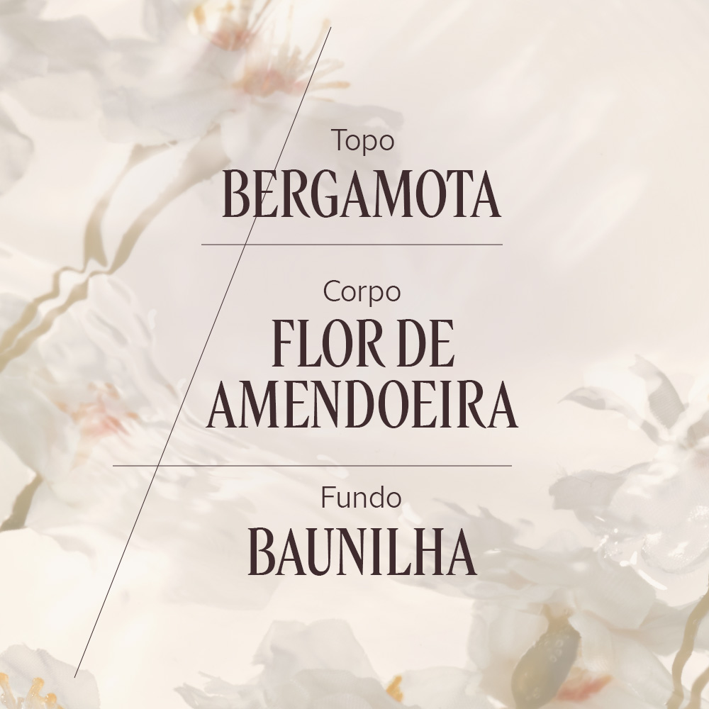 Sua fragrância elegante e reconfortante traz o delicado rastro floral das amendoeiras em flor combinado à cremosidade do leite de amêndoas e às notas envolventes de baunilha, sândalo e musk. Um convite para prolongar o prazer sensorial da linha Amêndoa em uma experiência que acompanha você da cabeça aos pés. O complemento perfeito para sua rotina: perfume-se em camadas e sinta a sofisticação da Provence em cada borrifada.