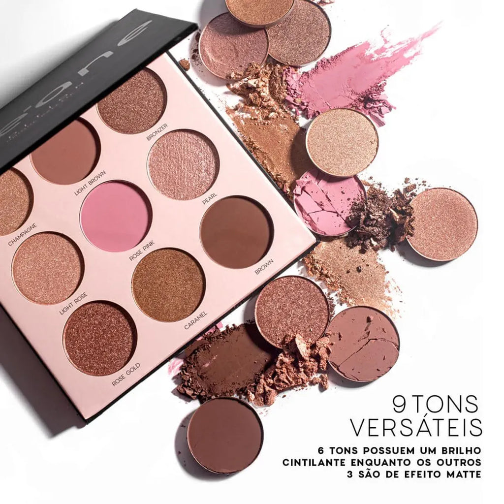 Com 6 tons com brilho cintilante e outros 3 matificados, as cores desta paleta de sombras são versáteis e atemporais.